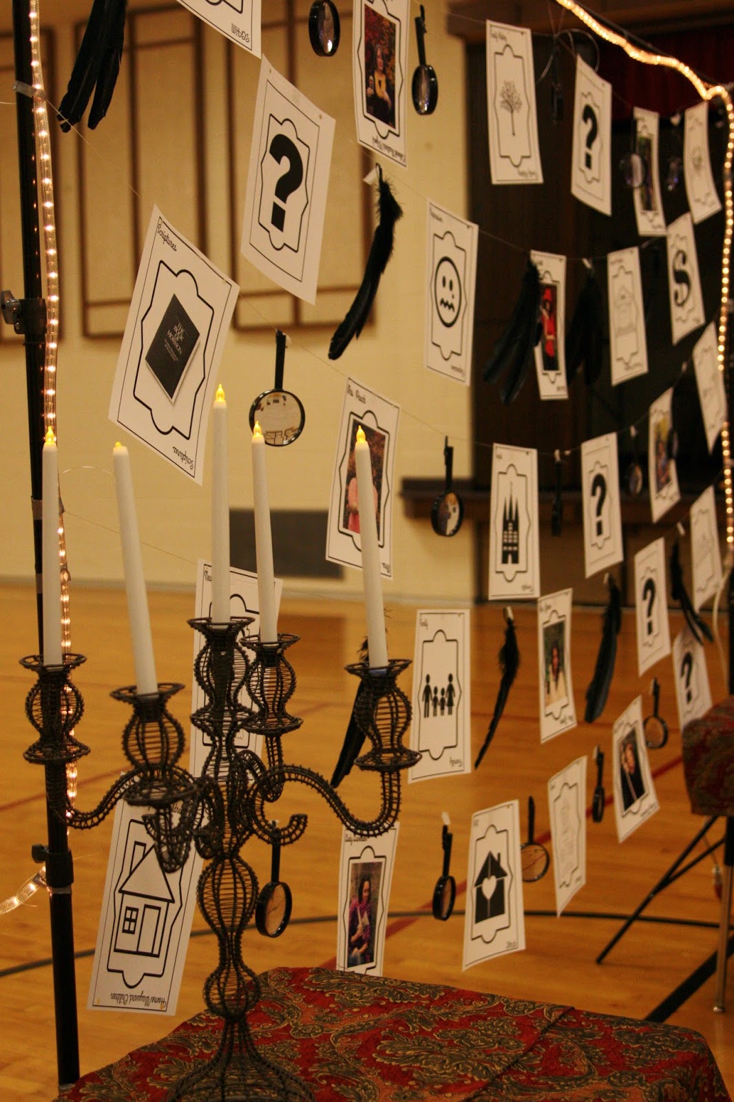 I asked a few ladies in my ward if they would be clue models for me. I gave them a character and asked them to bring a prop/weapon. I used these pictures as teasers for the night. Each week I would display one of the pictures on our ward RS Facebook page. The sisters loved this!
